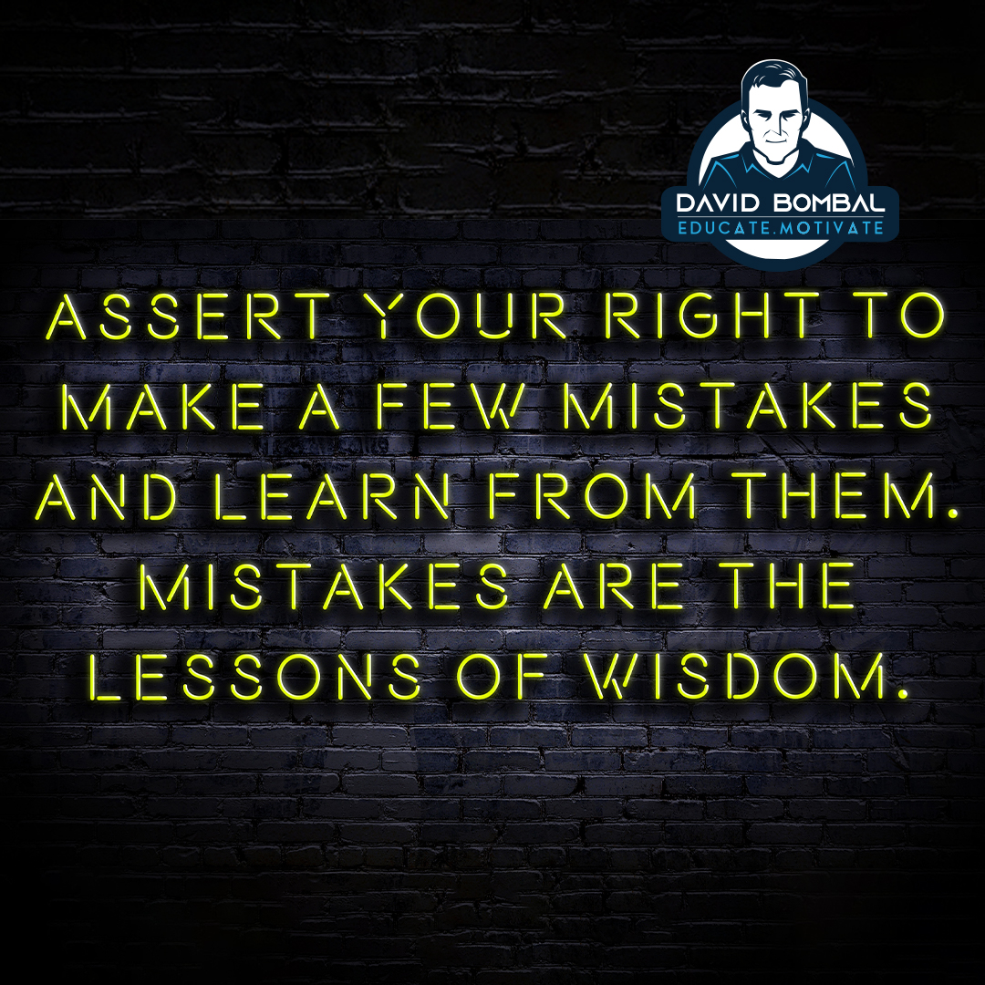 Assert your right to make a few mistakes and learn from them. Mistakes are the lessons of wisdom.